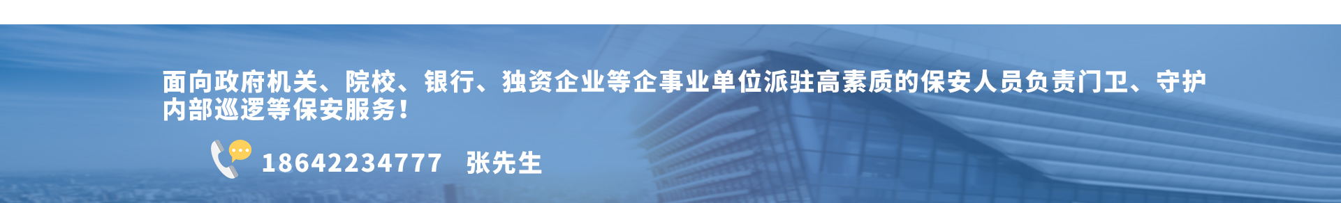 面向政府機(jī)關(guān)、院校、銀行、獨(dú)資企業(yè)等企事業(yè)單位派駐高素質(zhì)的保安人員負(fù)責(zé)門(mén)衛(wèi)、守護(hù)、內(nèi)部巡邏等保安服務(wù)!
